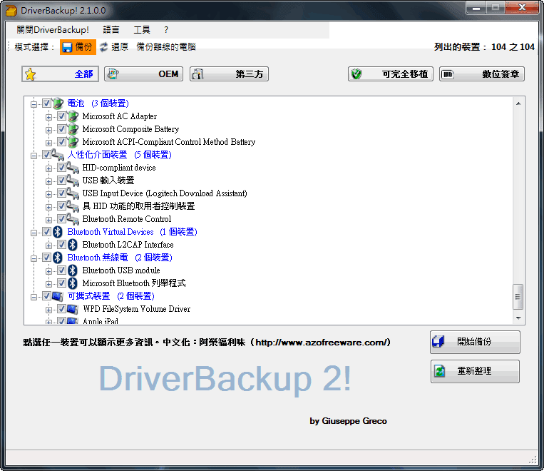 [新進軟體] DriverBackup! 2.1r6 免安裝中文版 - 免費驅動程式備份還原自由軟體